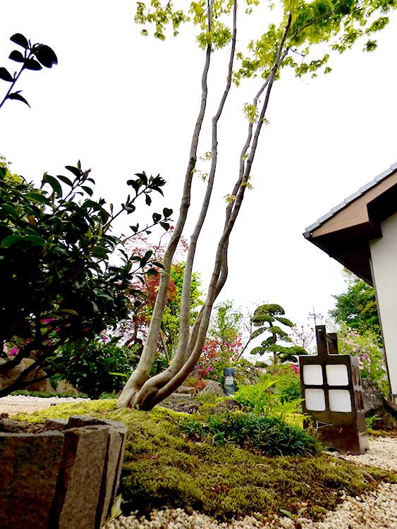 和の雰囲気と洋の雰囲気が全体的にバランスよく楽しめる構成になっている施主様こだわりのお庭になっています。