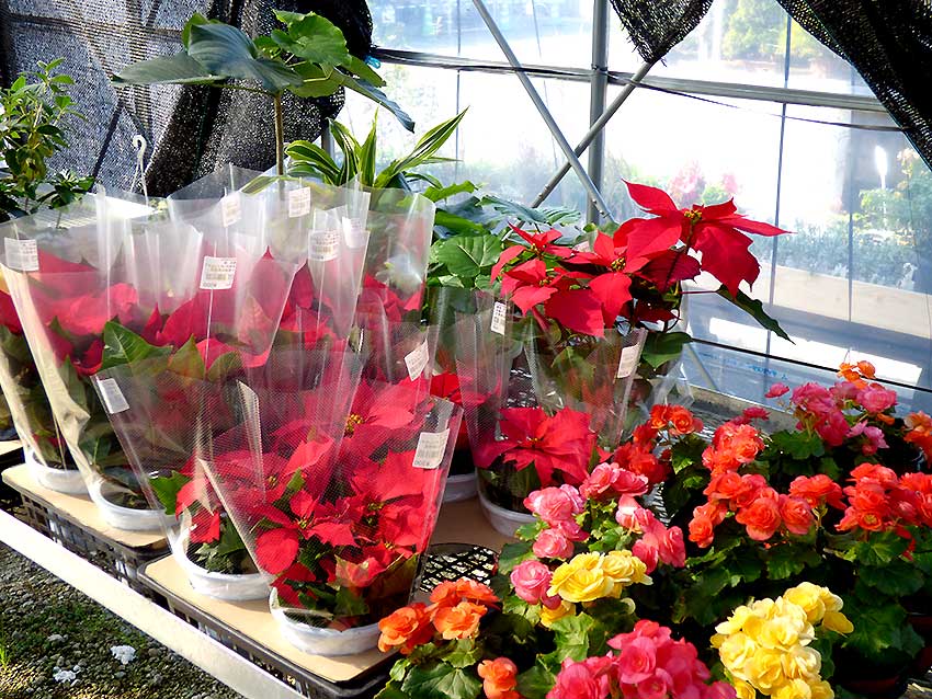 道の駅 みのりの郷 東金 緑花木市場でも、年末年始のご家庭を華やかに彩るポインセチアやシクラメンなどが登場しています!
