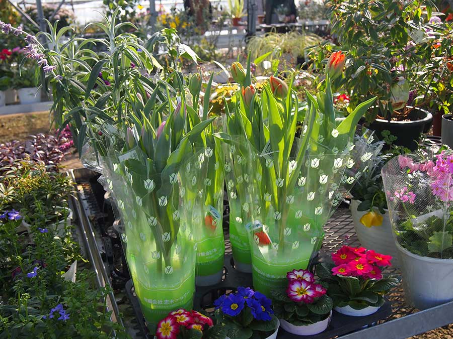 今が旬の水仙やクリスマスローズがたくさん並んでいるほか、チューリップも登場し始めました!