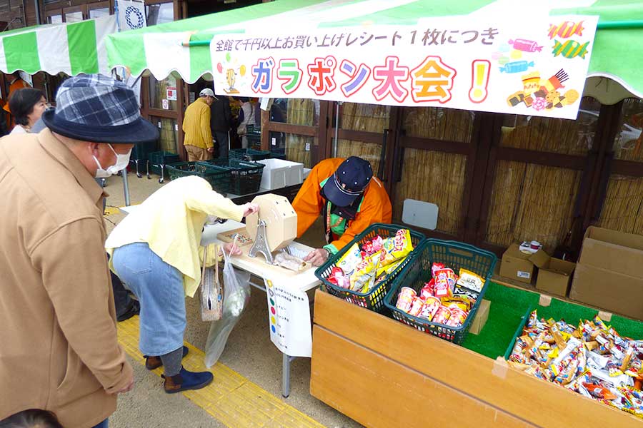 東金マルシェエントランス広場では、地元の美味しいものが集まるみのり屋台村のほか、千円以上お買い上げのレシート1枚につき一回 ガラポン大会や昨日に引き続き100円で野菜詰め放題!も絶賛開催中です!(どちらも無くなり次第終了とさせていただきます。ご了承ください)