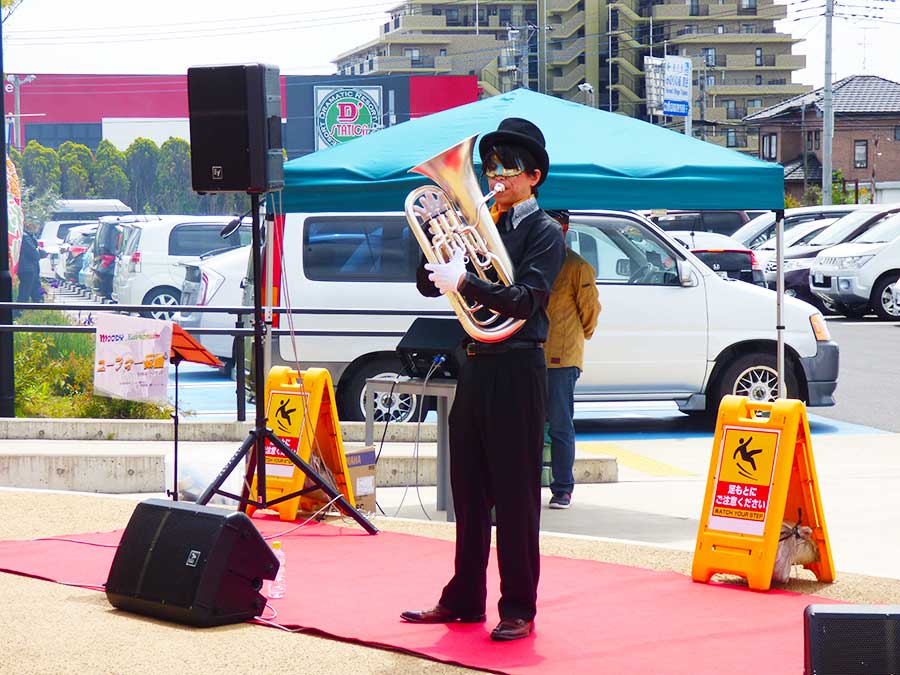 本日11時より東金マルシェ エントランス広場では、大人から子供まで楽しめるユーフォニューム演奏と、軽快なトークが魅力のユーフォー仮面さんによるステージが行われ、お客様も巻き込んで賑わいました♪