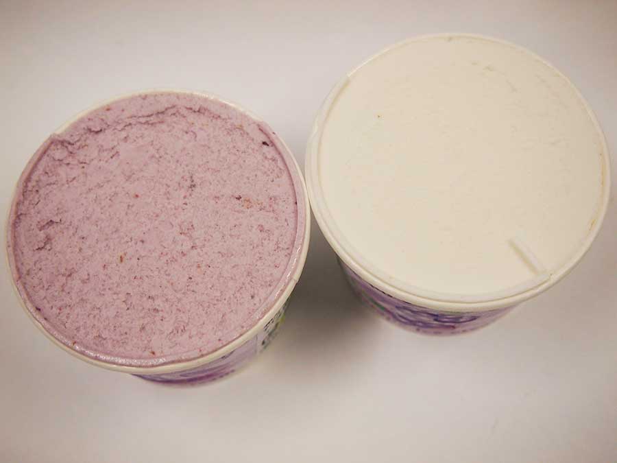 (右写真左)巨峰アイスは芳醇な巨峰の味と濃いミルクの味がクリーミーなおいしさです。