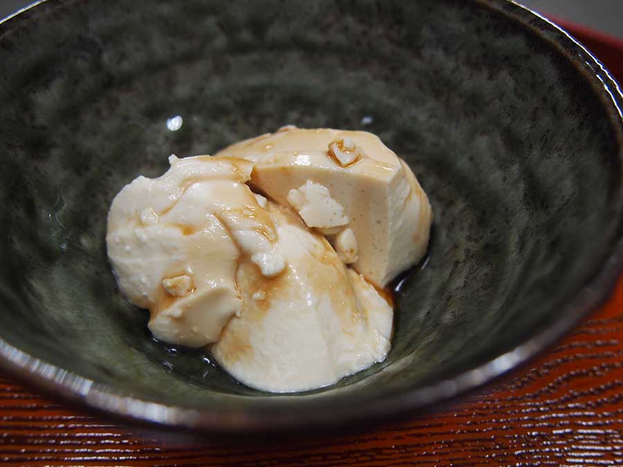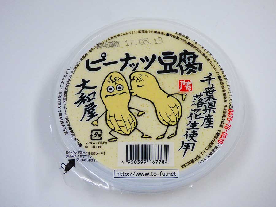 ありそうで無かった千葉県の名産ピーナッツを使ったお豆腐で、滑らかな口当りに濃い大豆とピーナッツの香ばしさがおいしい一品です。