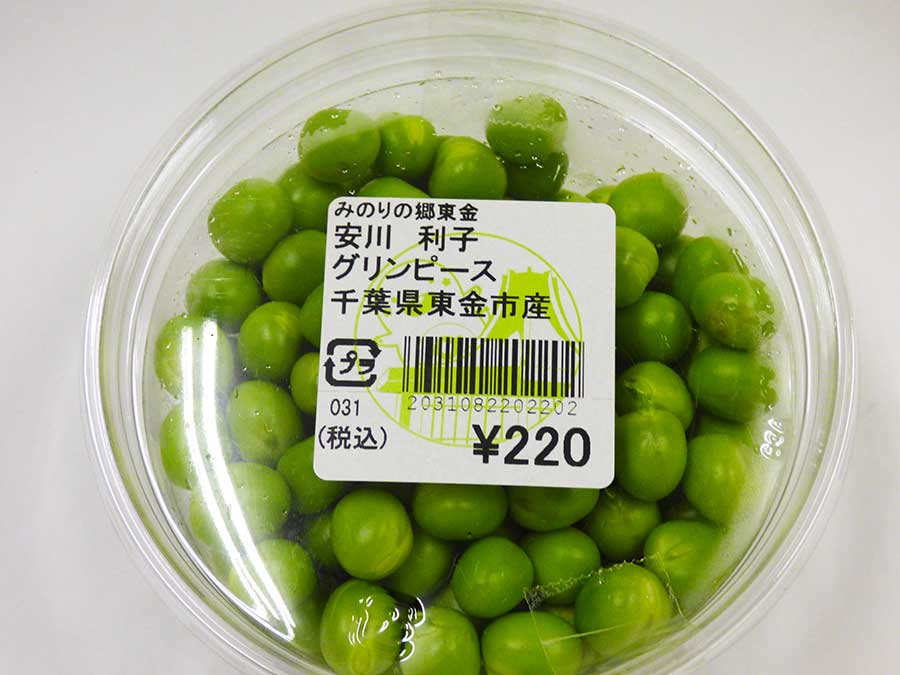 安川利子さんのグリンピース (東金市産) 約110g 220円(税込)