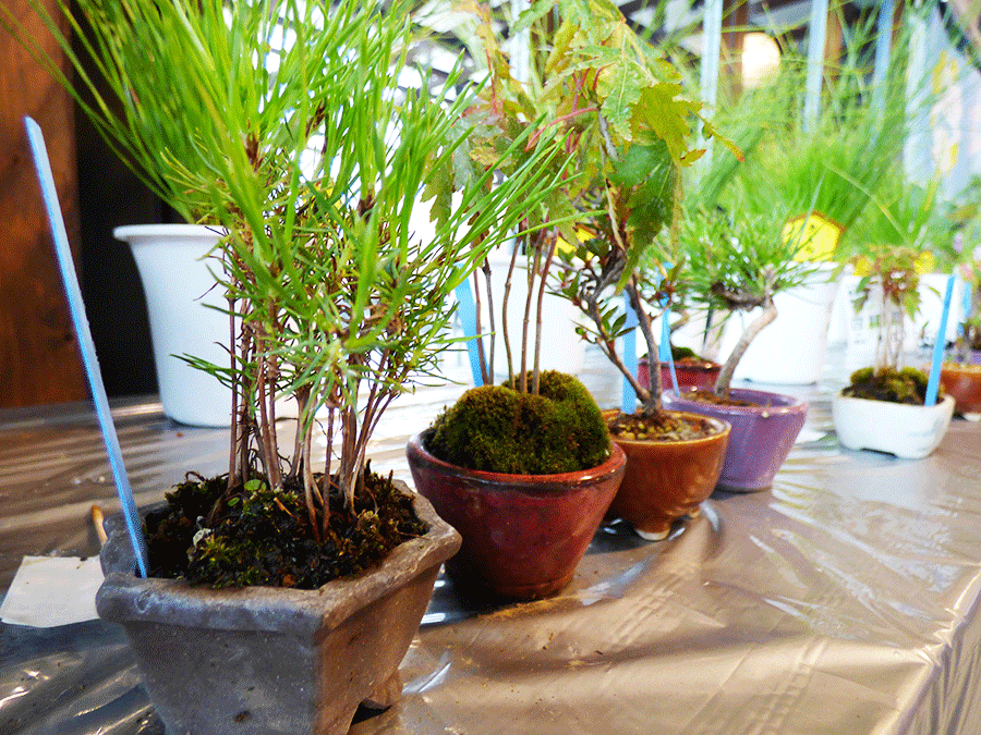「植木のまち東金」ならではの可愛らしい手乗りサイズの豆盆栽。多肉植物の寄せ植え、どっしり構えた真柏の盆栽、ブドウ(キャンベル)の鉢植え、日本酒呑み比べセット、おつまみ各種などなど素敵な商品を多数ご用意しております!