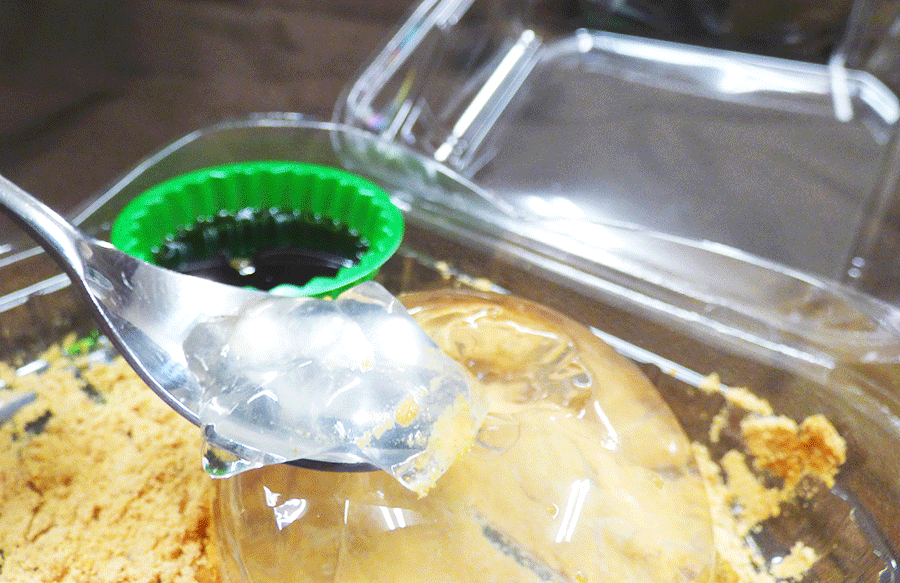 控えめな甘さの水まんじゅうは付属のきな粉と黒蜜をたっぷりとつけてお召し上がりください!