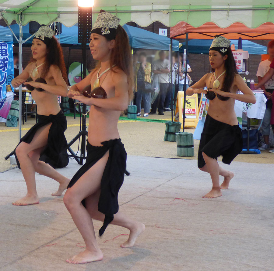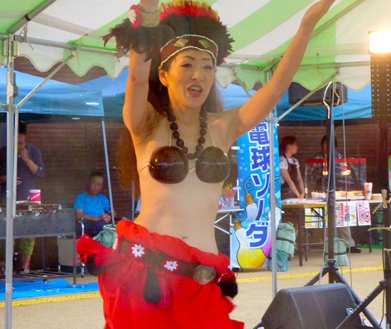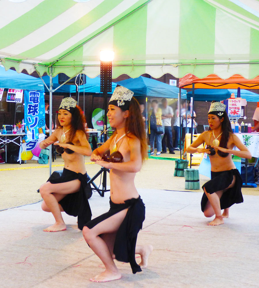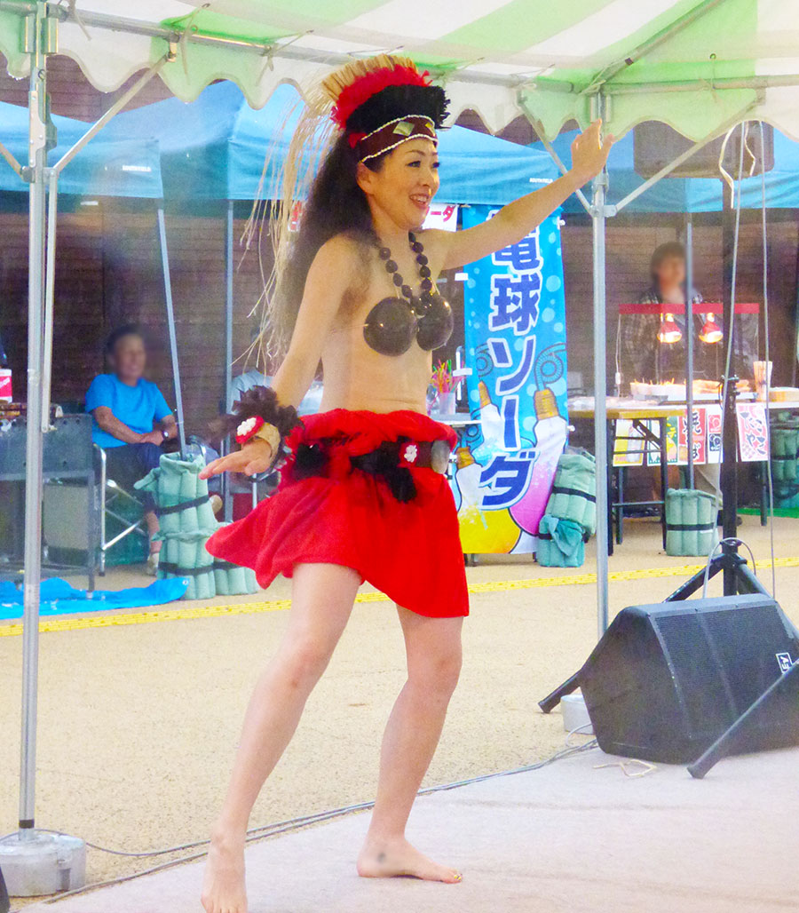 最終日である8月15日のゲストは『Herehina Tahiti』の皆さんよるタヒチダンスが行われ、大粒の雨にも負けない掛け声と軽快な音楽に合わせて、情熱的なダンスをご披露いただきました。