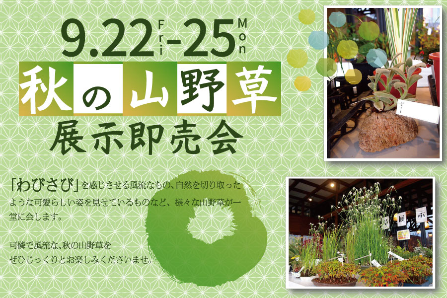 道の駅みのりの郷東金 情報発信コーナー外テラス他におきまして「秋の山野草展示即売会」を開催いたします。