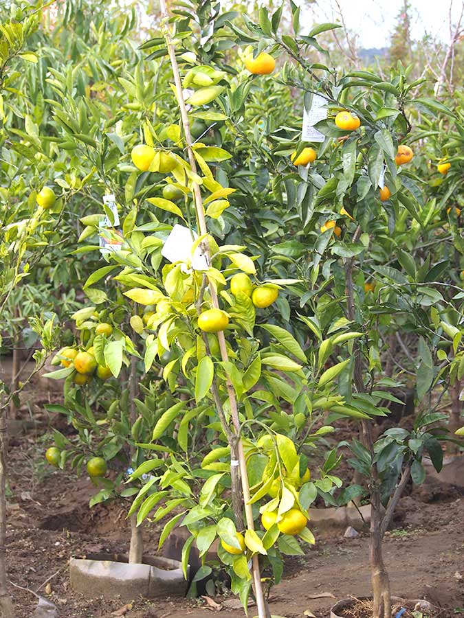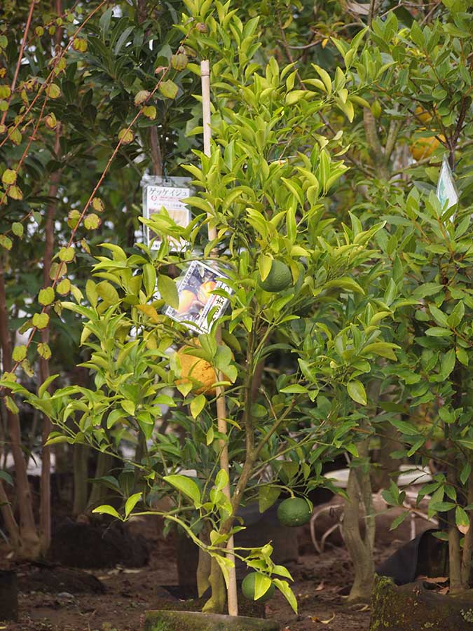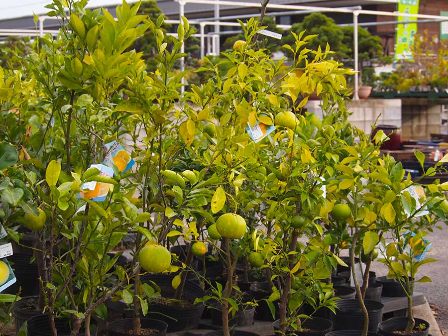 さて、今の時期に緑花木市場で目立っているのが柑橘系の実のなる樹木です。