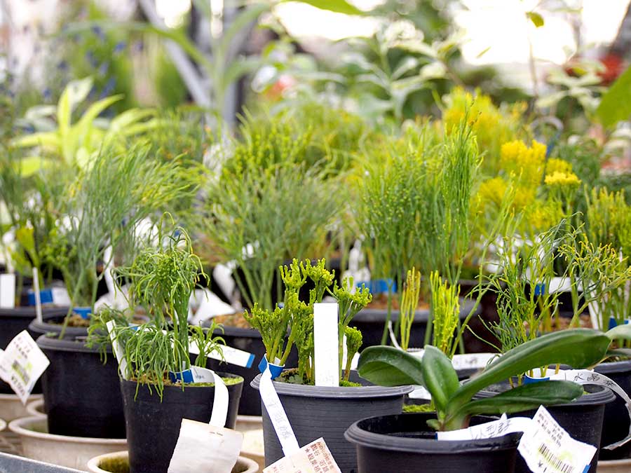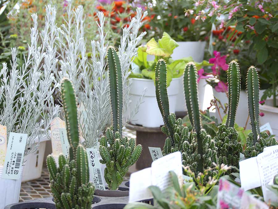 パイプハウス外の花苗売り場では、菊が並び始めました。