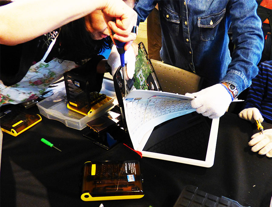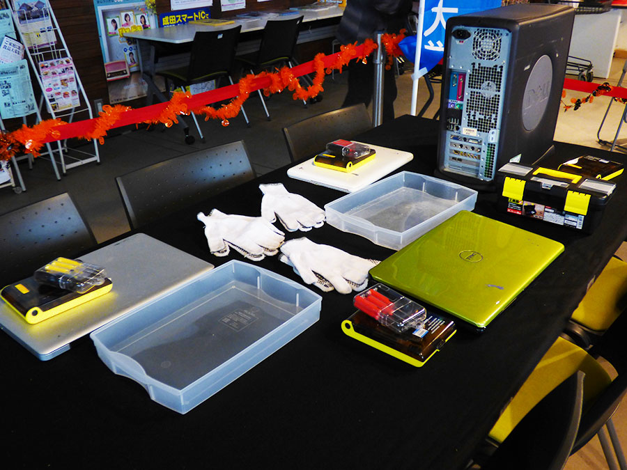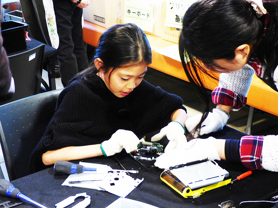 初めは、『パソコンの解体?難しそう。』というご参加者さんも始めてしまうと,機械を解体するという貴重な体験に大人も子供もドキドキ・ワクワクなご様子でした。