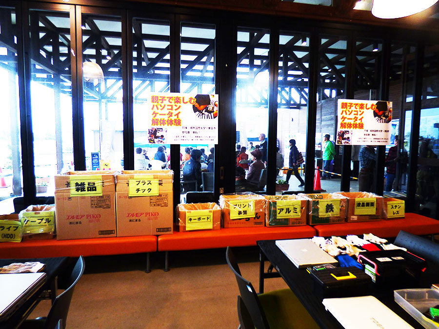 2017年10月28日の道の駅 みのりの郷東金 情報発信コーナーでは城西国際大学・東金市の共催による第4回『親子で楽しむケータイ・パソコン解体体験』が開催されました。