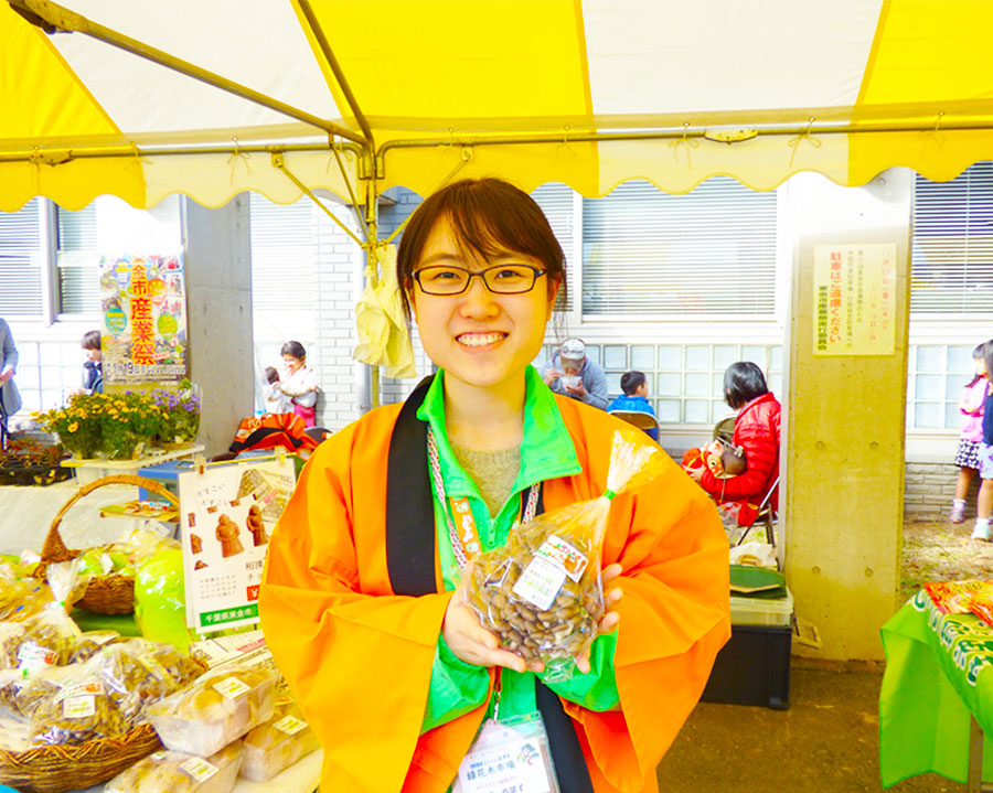 道の駅 みのりの郷 東金からは、東金市の農産物であるぷりっぷり食感が自慢の『東金きのこ』や、東金市公式キャラクター『とっちー』のグッズ、植木のまち東金の名物『とうがねまめぼん』、友好都市の安曇野市のリンゴや柿など様々な商品が並びました。