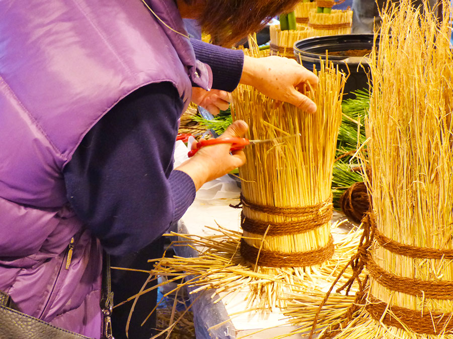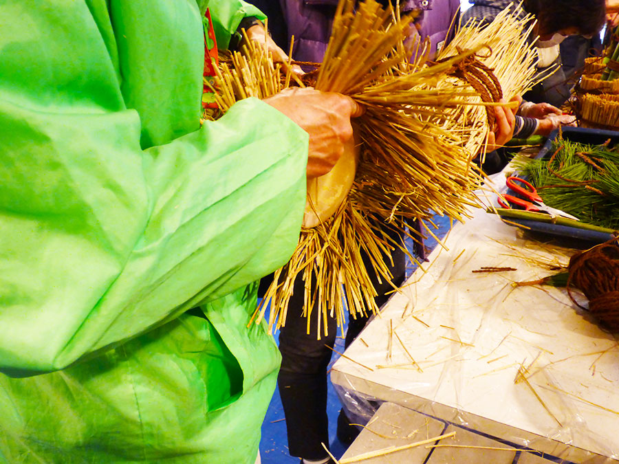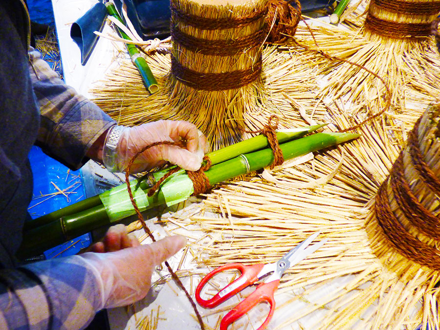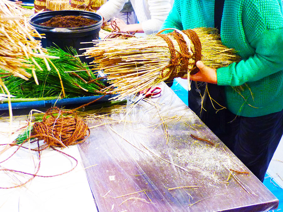 初めは藁や、竹を束ねる作業に苦戦する場面も見られましたが、30分もすると皆さま慣れた様子で完成に向かって進めていきます。