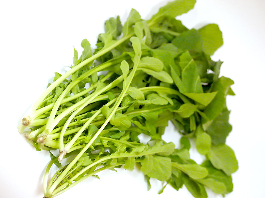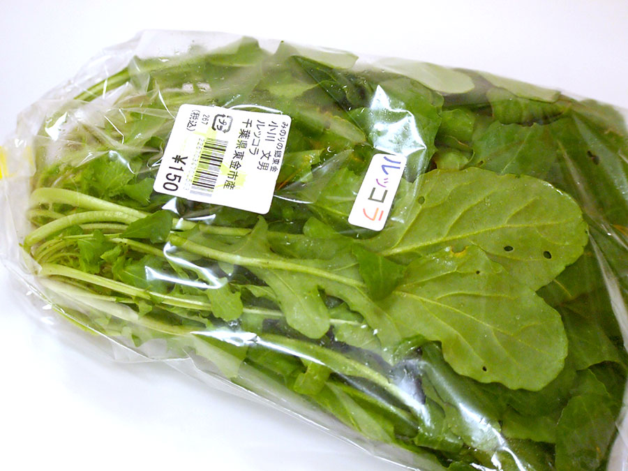 (右)小川さんのルッコラ(東金市産) 約150g 150円(2018年1月24日価格)