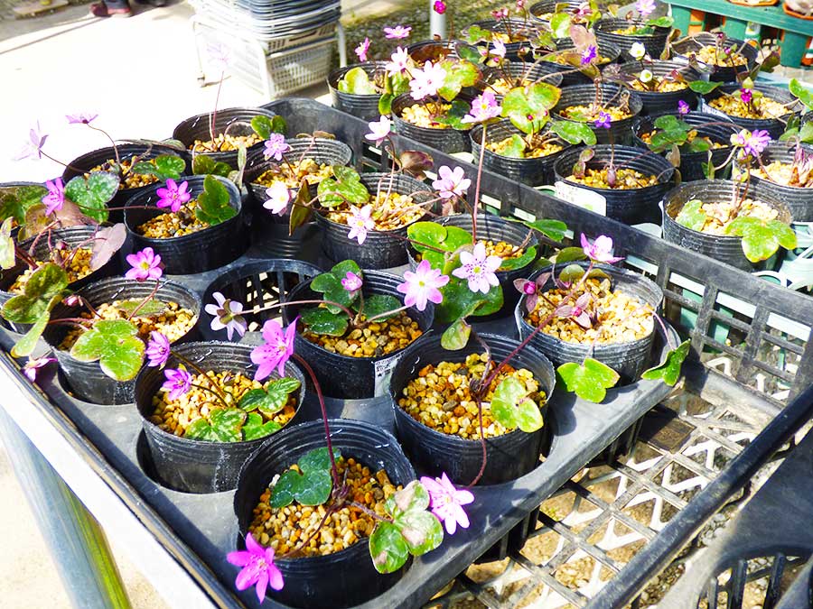 緑花木市場では鮮やかな黄色い花が可愛らしいリュウキンカや、可憐な小花の雪割草、これからの季節楽しみな多種のクレマチスなどさまざまな鉢花をご用意しております。また、園芸用品もございます!