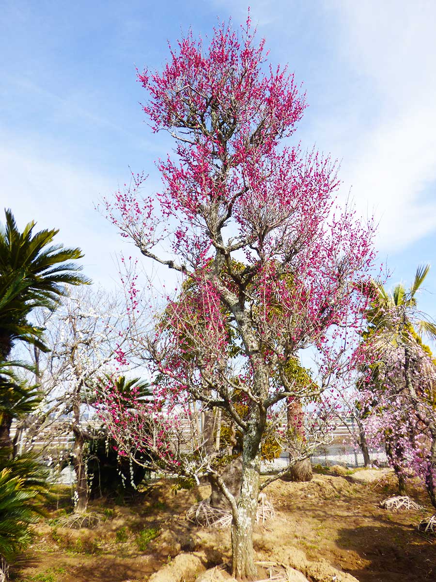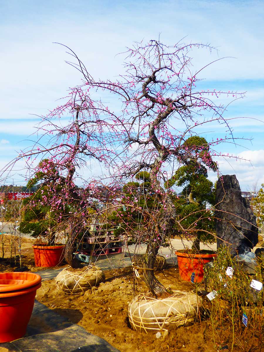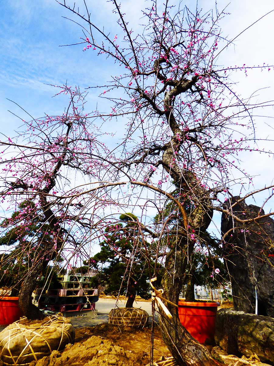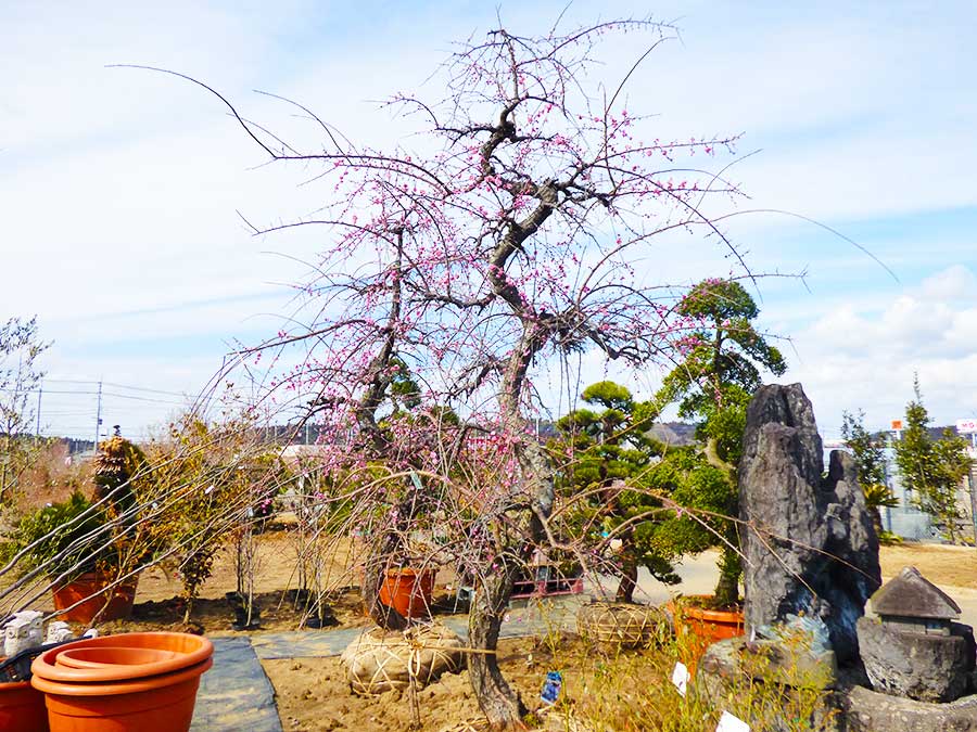 植木コーナーでは紅白さまざまな色をつけた梅の花がほころびはじめております。