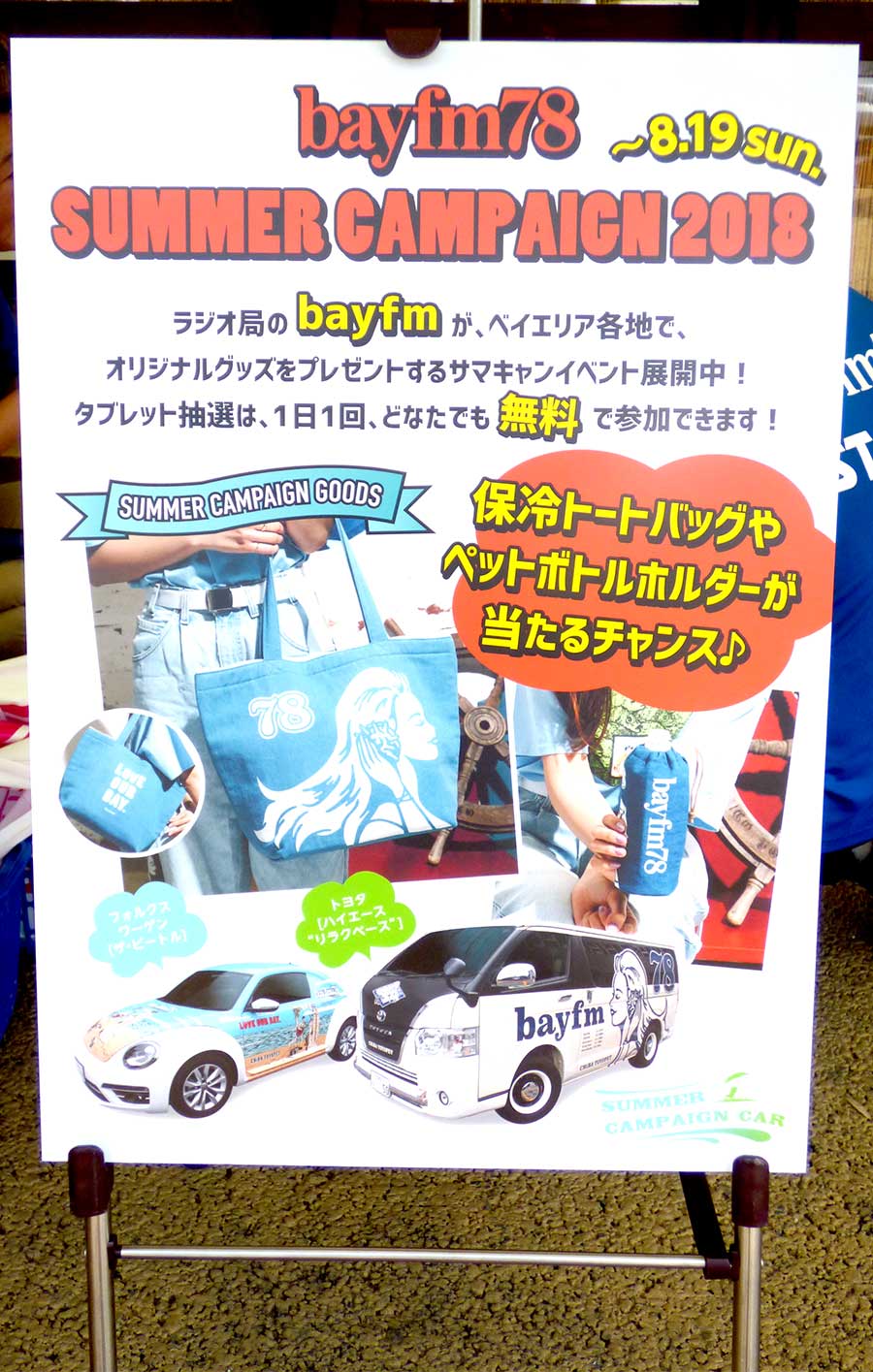 イベントではbayfm SUMMER CAMPAIGN2018オリジナルグッズが当たる抽選会やグッズのサンプリング配布などがありました。何が当たるかドキドキですね!