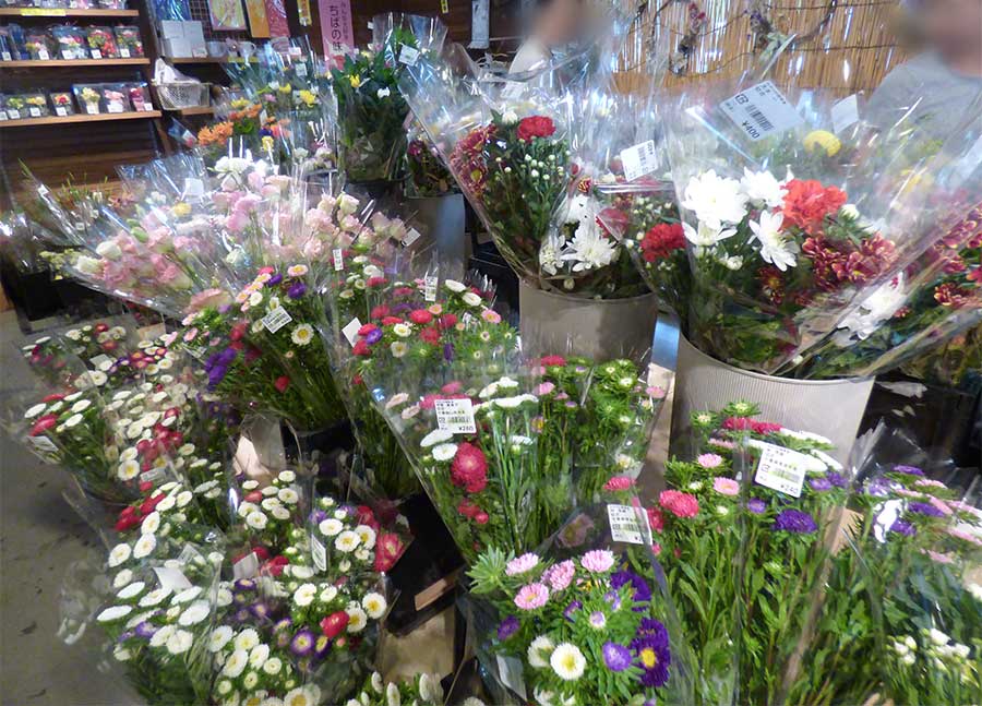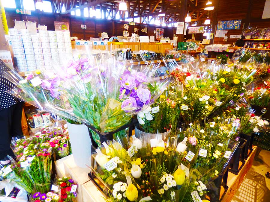 道の駅 みのりの郷 東金 東金マルシェ入口右側にございます切花コーナーが充実しております。