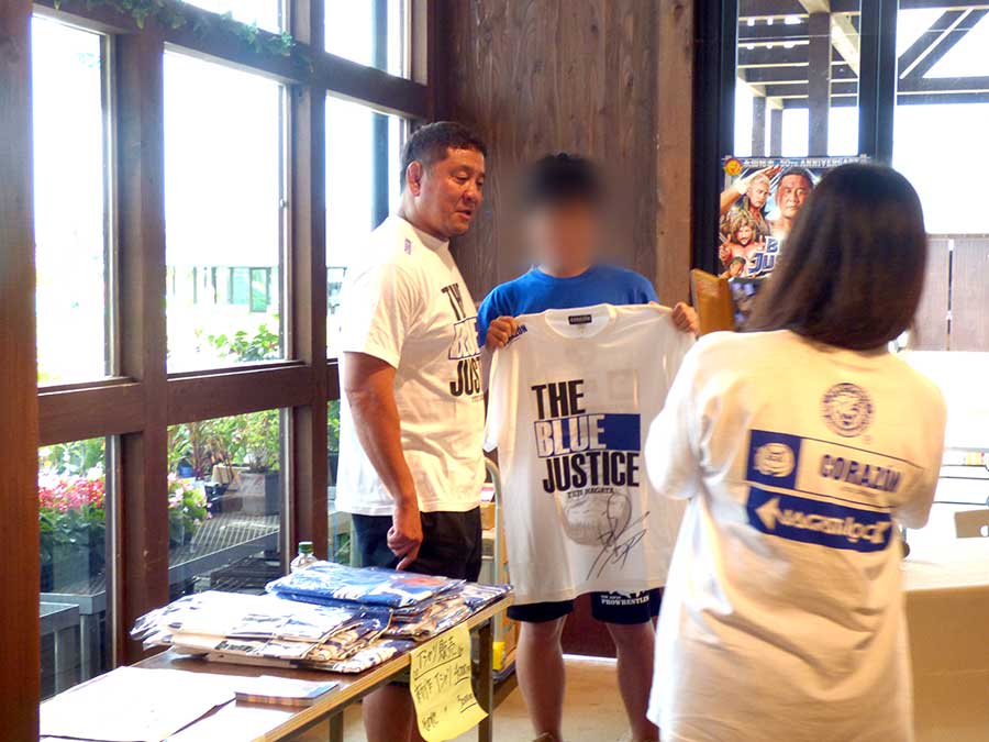 最後は集まったファンの方々たちから永田裕志選手への質問タイムや物販Tシャツを購入した方限定で、永田選手のサイン&2ショット撮影が出来るなどファンにはたまらないトークイベントとなりました。