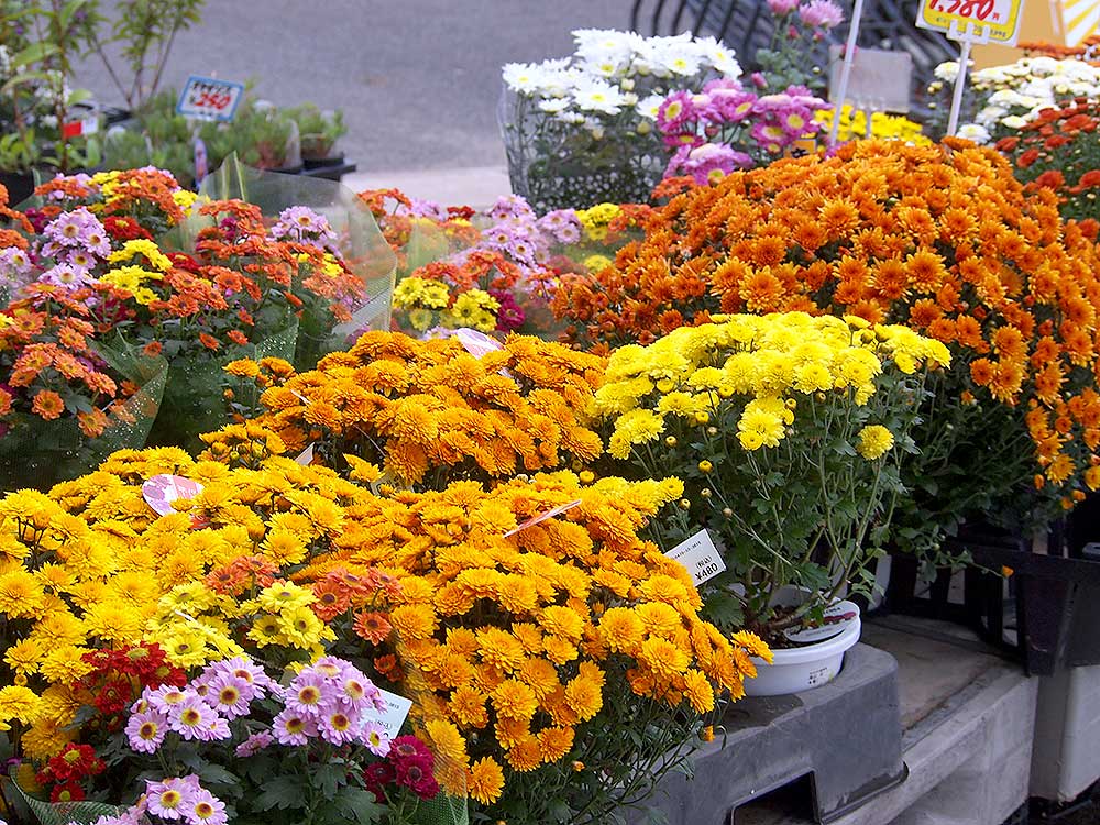道の駅 みのりの東金 緑花木市場では、気温がスーッと下がってきた今日この頃、菊やコスモス、ダリアなど秋を彩る花が見ごろになってまいりましたよ~♪