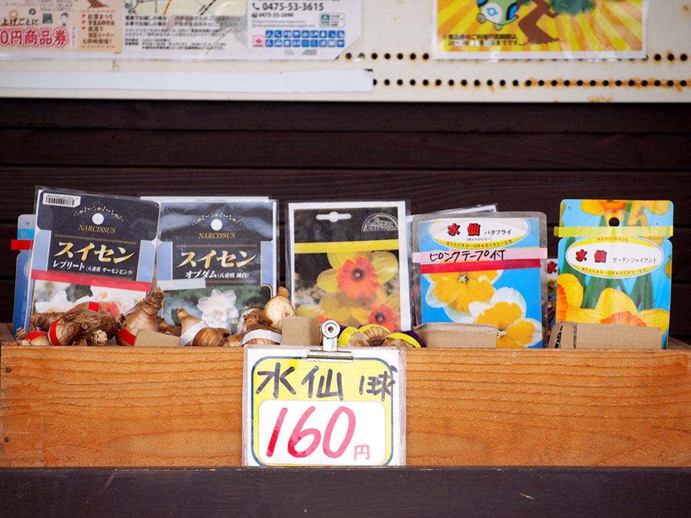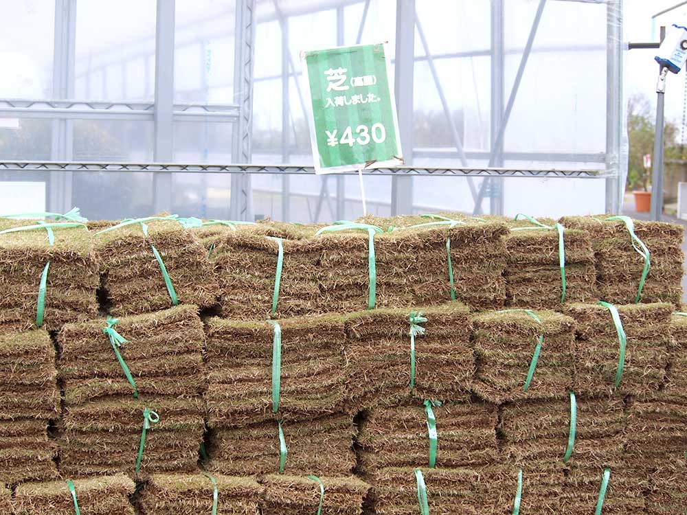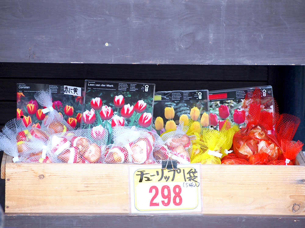 芝はパイプハウスの脇、球根類は緑花木市場レジ脇に「球根コーナー」があります。