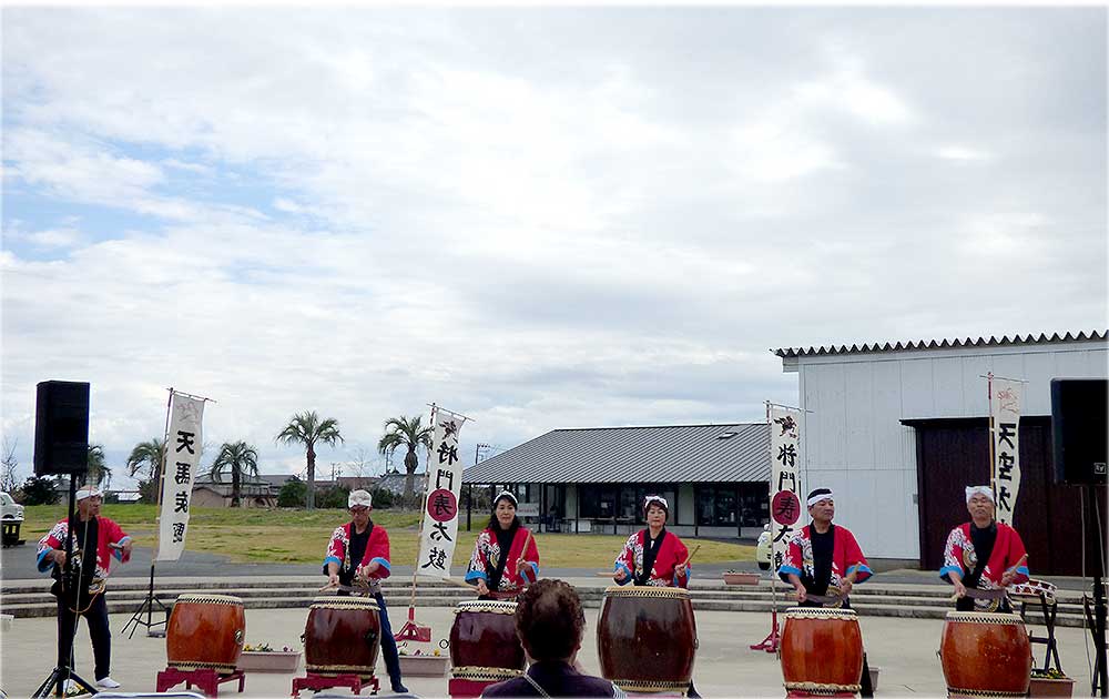 また、本日のオープニングを飾ってくださった「将門寿太鼓」の皆さん、お客様を和ませパワーがものすごい「ユーフォー仮面」さんの演奏もあり、