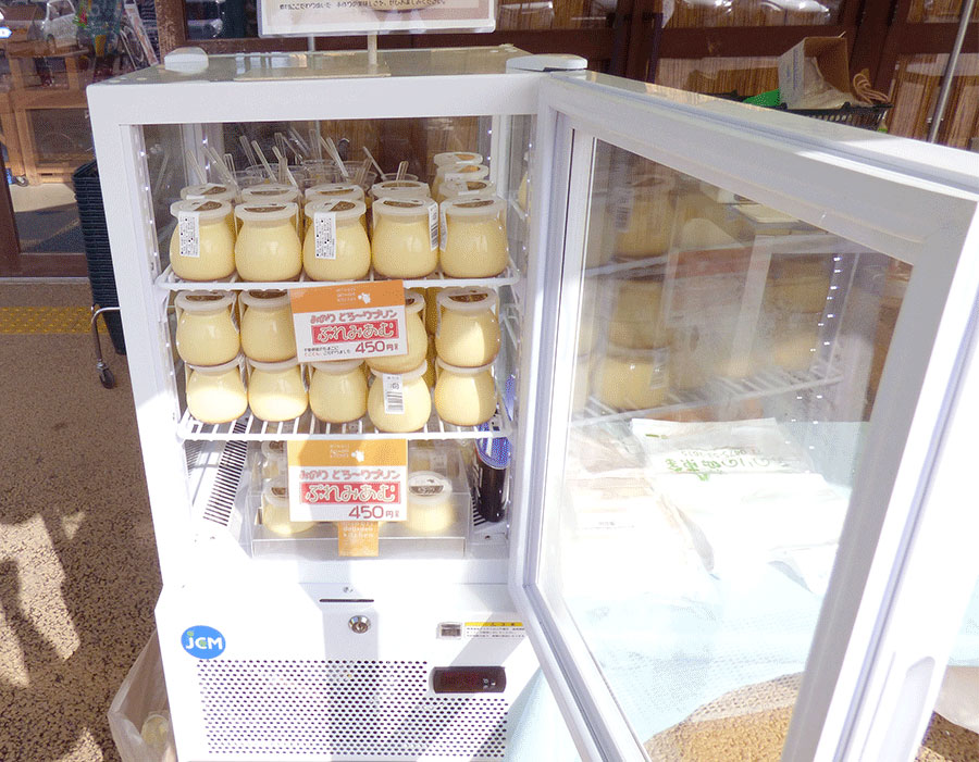 ただいま、道の駅 みのりの郷 東金 みのりdeli*deli kitchenの人気商品「みのりとろ~りプリン」を本日は東金マルシェ入口にて試食販売中です!