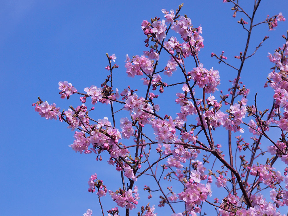 桃色の花びらと2月の澄んだ青空が美しいです。春の足音がどんどん近くに感じられてきました!