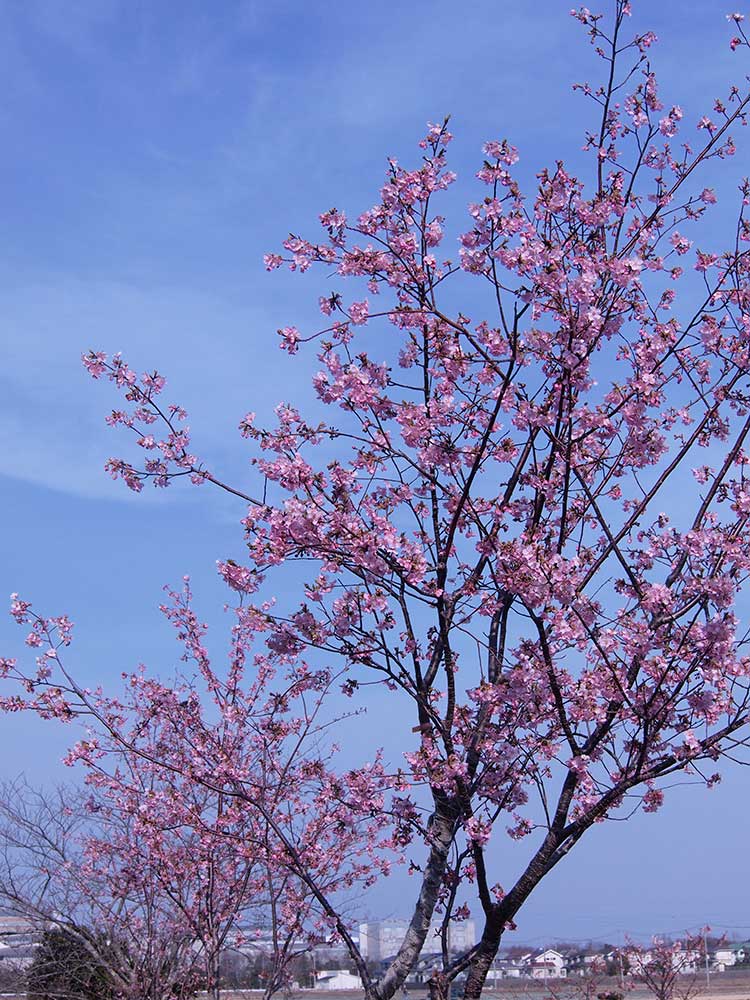 道の駅 みのりの郷 東金のしばふ広場の奥の方には10本程度の河津桜があります。三寒四温の日が続いている千葉県東金市ですが、風が冷たいけれど太陽がポカポカの日曜日から満開を迎えましたよ~♪