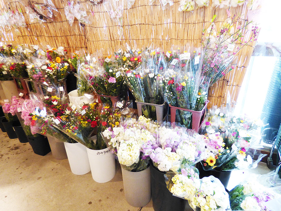 道の駅 みのりの郷 東金 東金マルシェ入口右側にございます切花コーナーに新鮮で美しい切花が並んでいます!