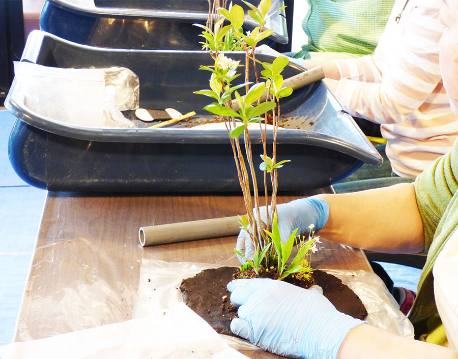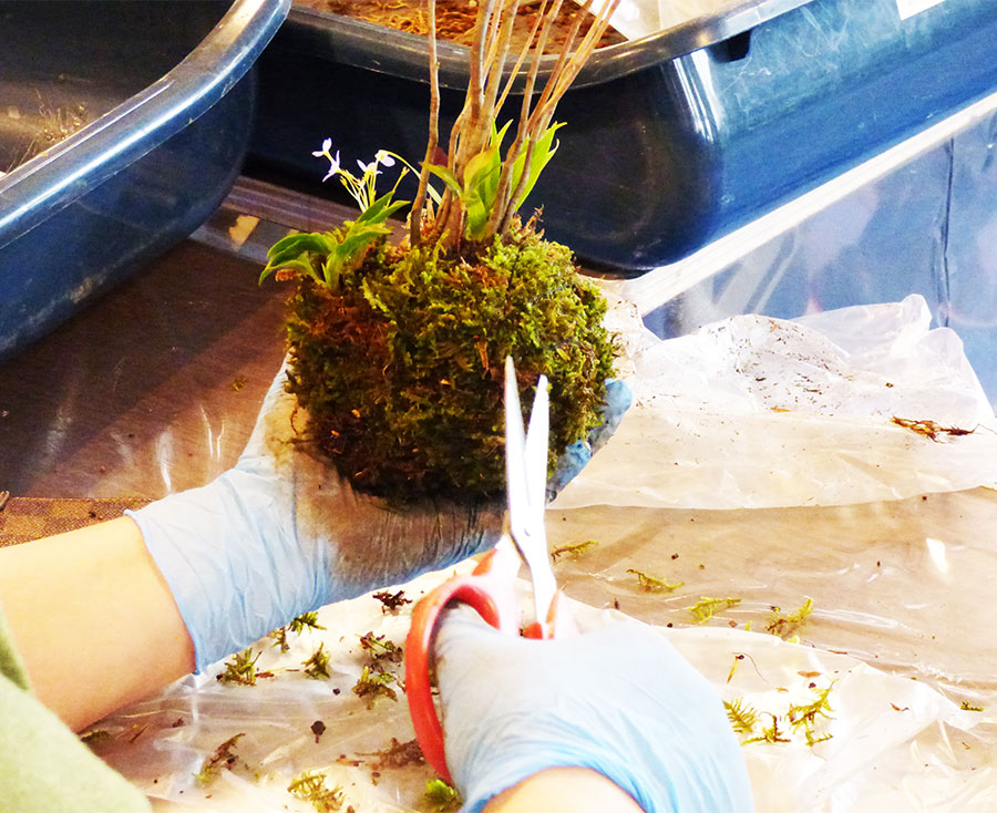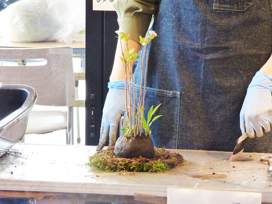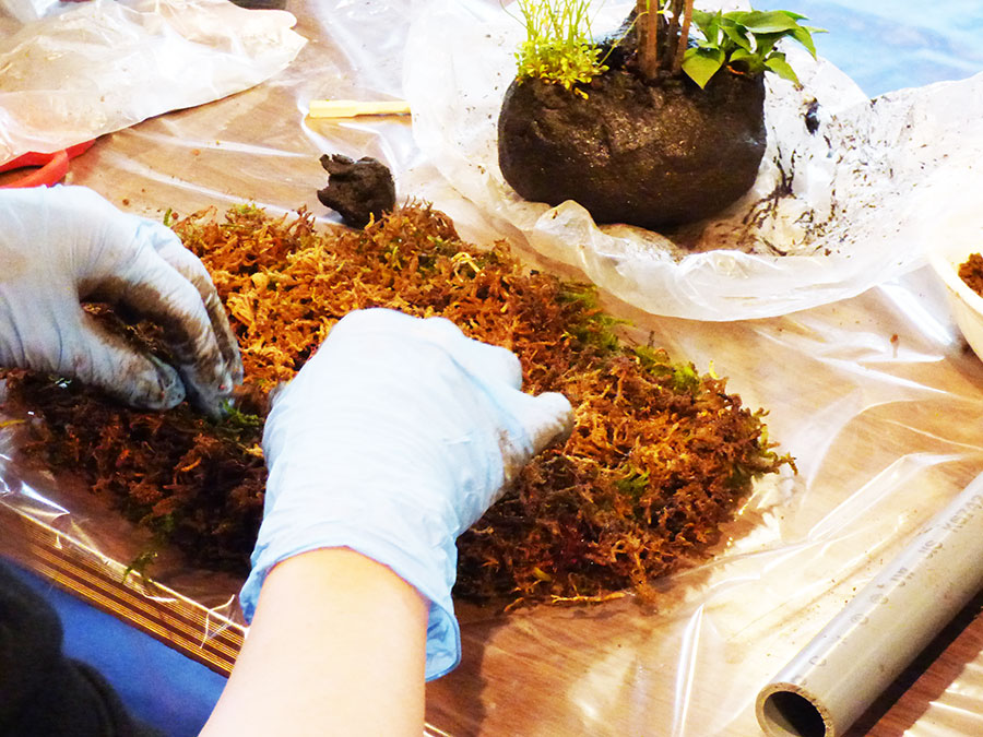 苔玉づくりワークショップでは土屋桜子先生をお招きし、これからの季節にぴったりの涼しげな苔玉を作りました。