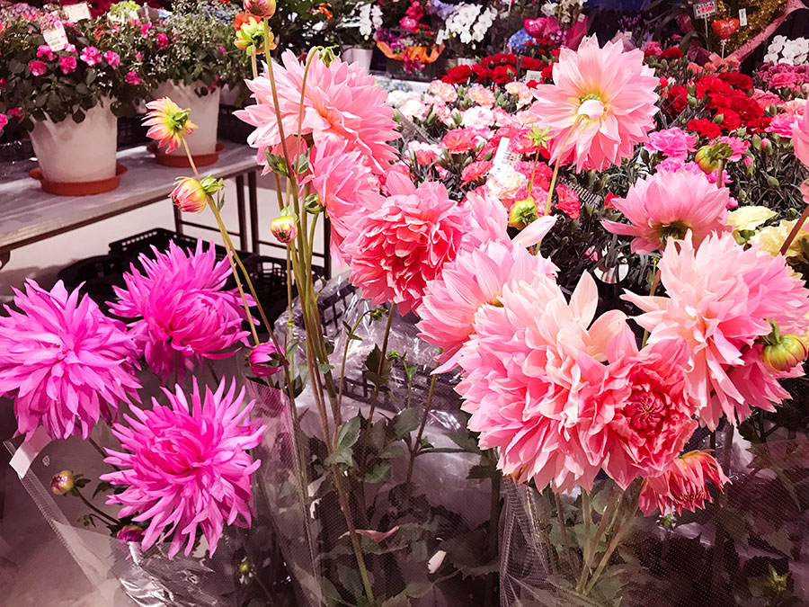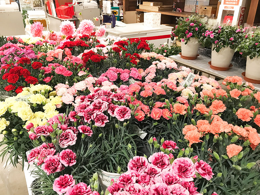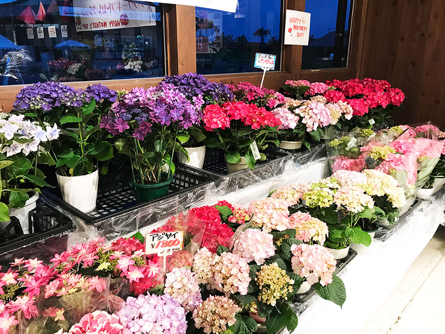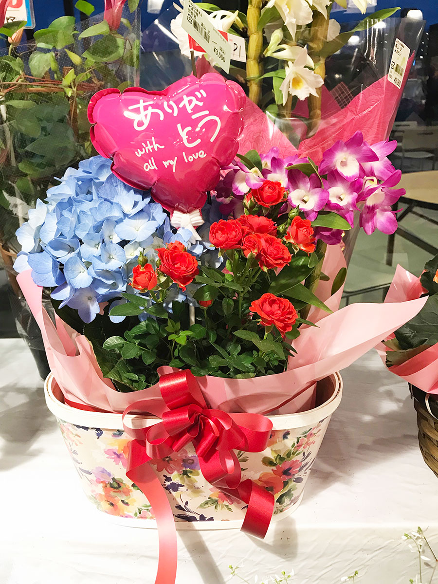 母の日の王道・カーネション!や人気のアジサイ、華やかな薔薇やダリア、活気溢れるハイビスカスなどなど見るのも楽しいギフトが並んでいますよー!