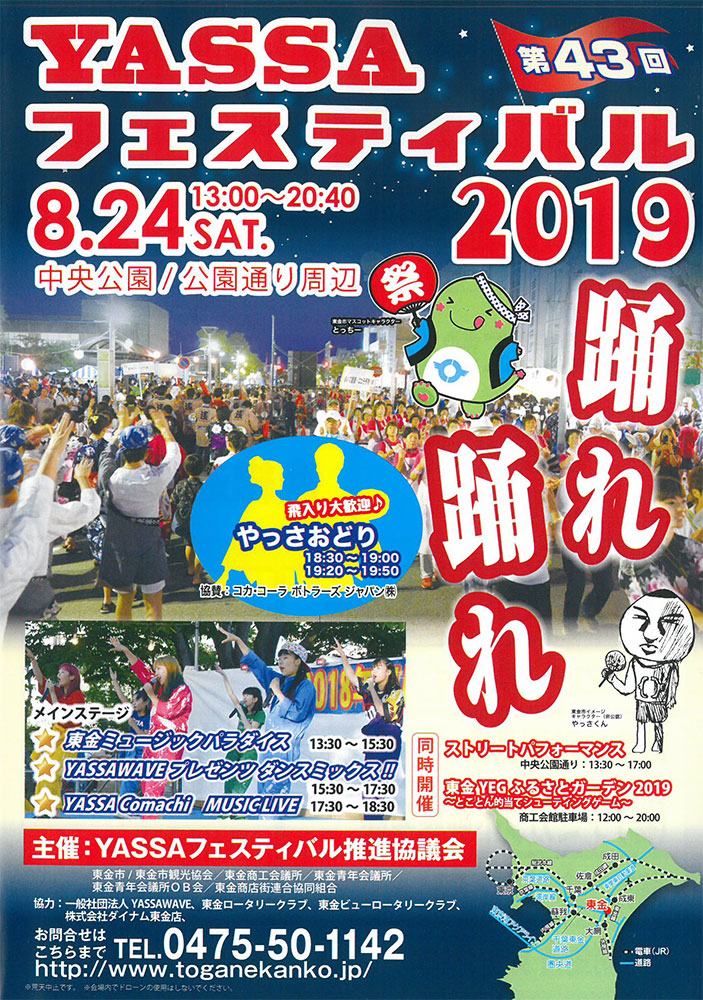 道の駅 みのりの郷 東金がある千葉県東金市の夏!最大のイベント「YASSAフェスティバル2019」が開催されます!