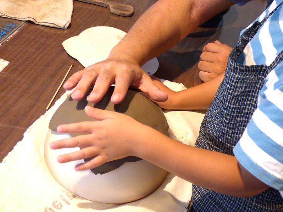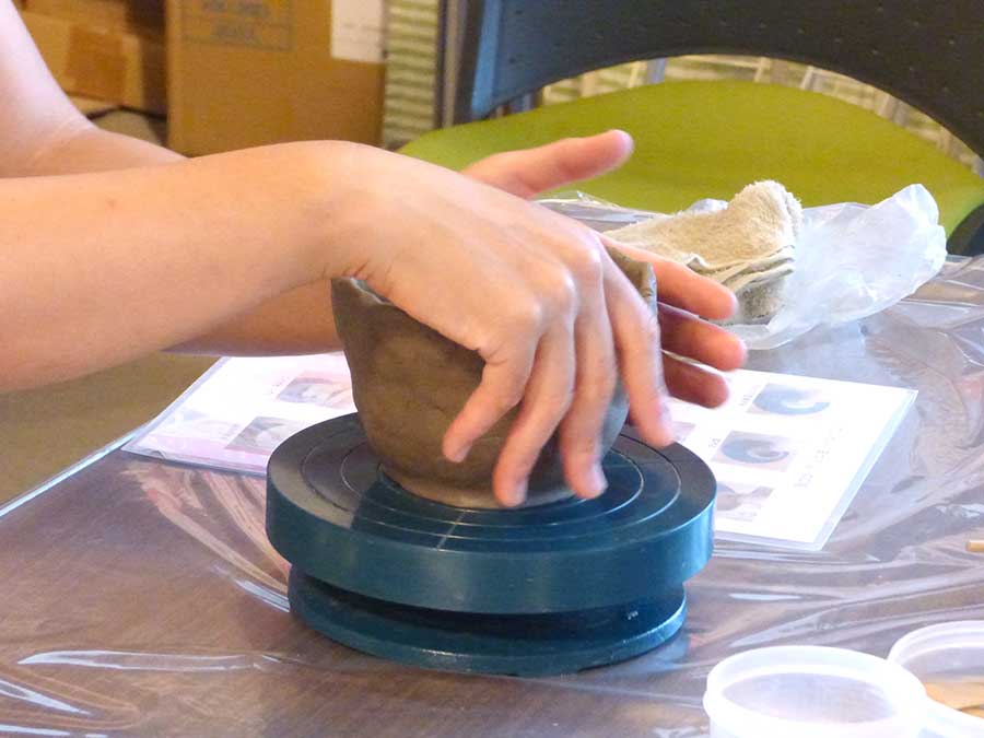 手びねり陶芸体験はソフトボール程のサイズの粘土を使用し、茶碗・皿・マグカップなどお好きな食器を作る体験です。