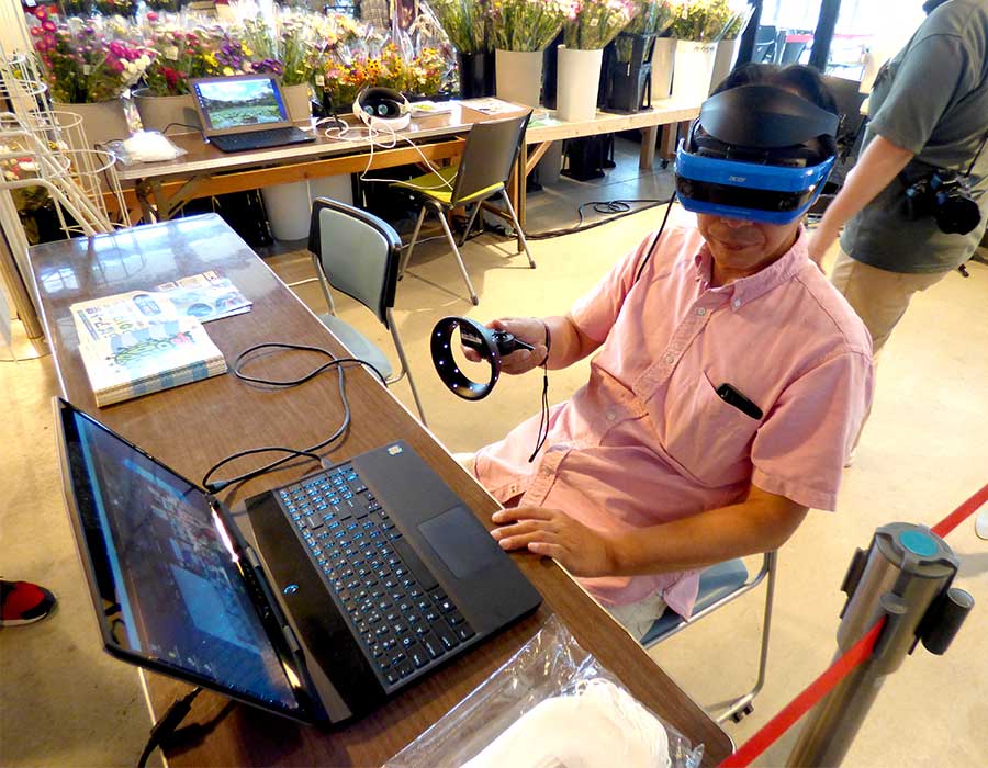 本日は情報発信コーナーにて、城西国際大学メディア学部中嶋研究室 主催による「チャレンジ!VR(バーチャルリアリティ)体験」が行われています。