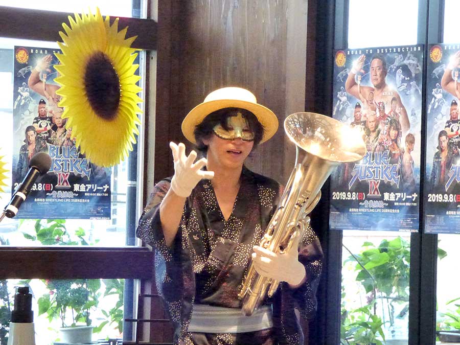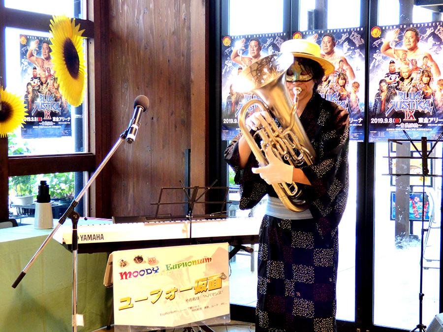 最終日の1ステージ目はユーフォー仮面 その名は”ヘバマンズ・アヤ・シカダーネ”さんによるユーフォニアム演奏でした。