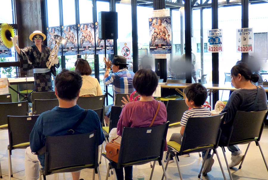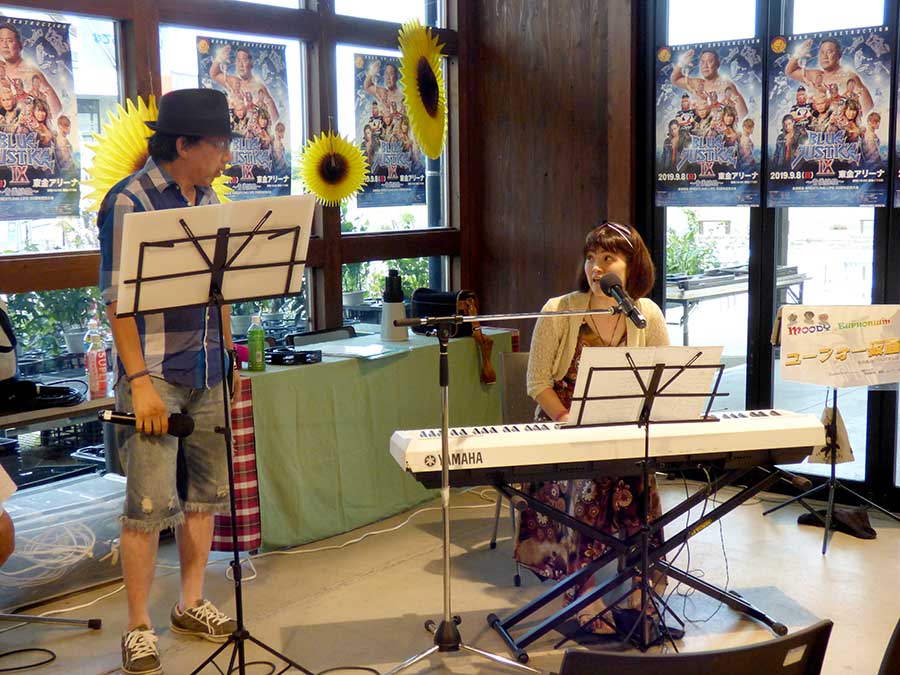 15日もうだる様な暑さだったため急遽、会場が変更となりまして情報発信コーナーにてみのり夕市ステージを行いました!