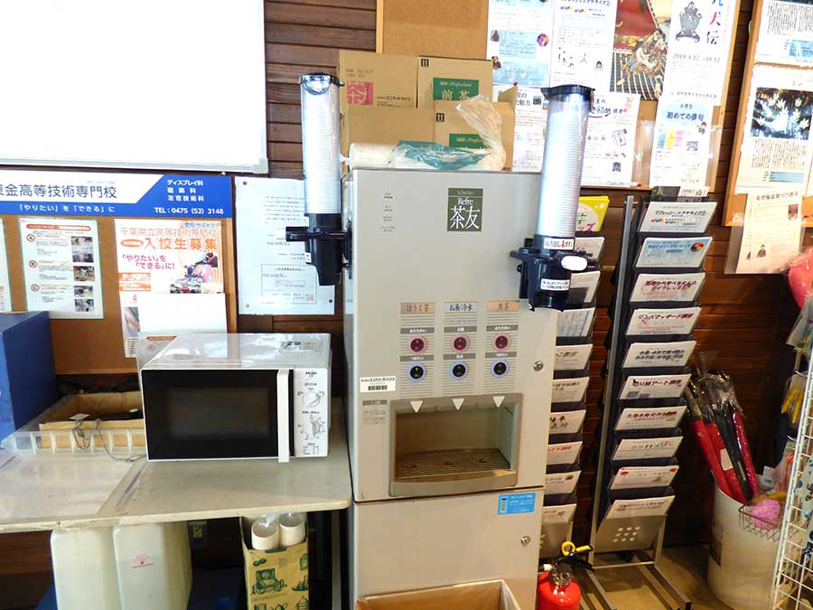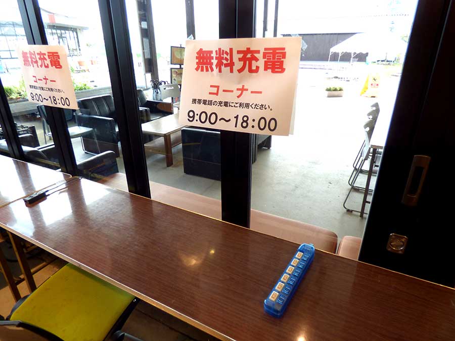 冷房の効いた休憩スペース・スマホ等の無料充電コーナー・給茶機のサービスもご用意しております。