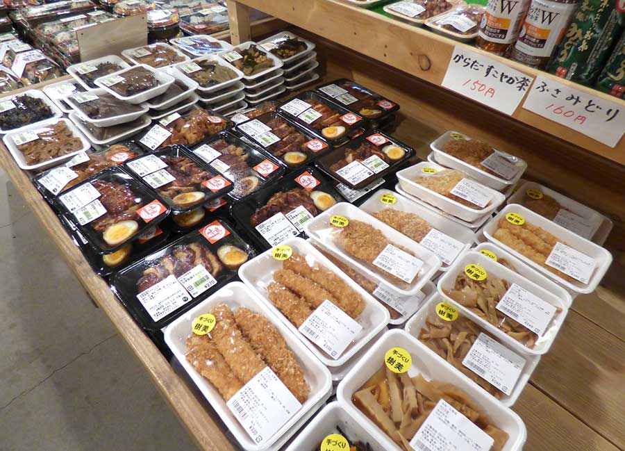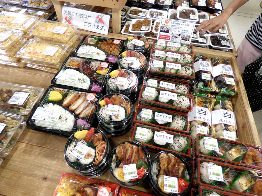 道の駅 みのりの郷 東金 東金マルシェ店内ではお野菜、お弁当、お飲み物などをご用意しています。