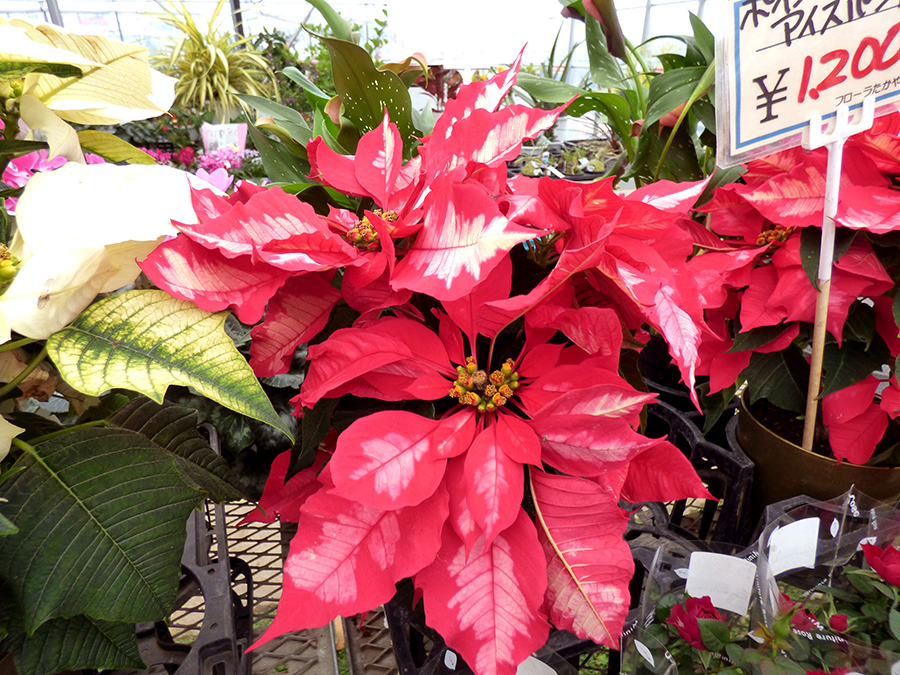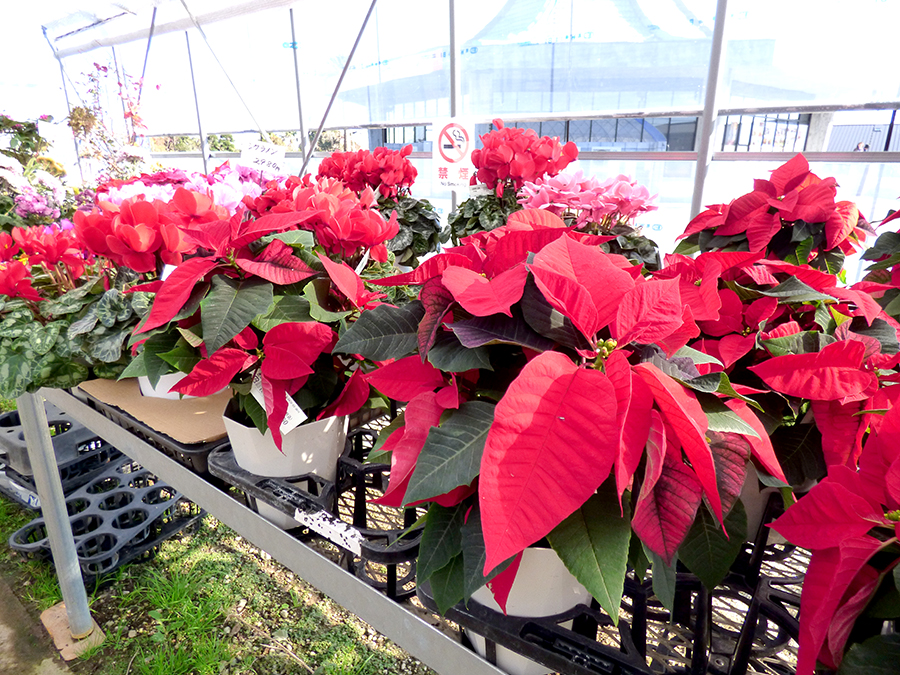 道の駅 みのりの郷 東金 緑花木市場では、シクラメンやポインセチア、クリスマスローズなどの花々が彩りをみせています。