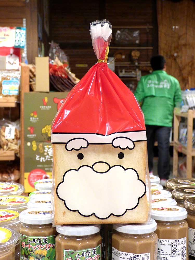 道の駅 みのりの郷 東金 東金マルシェにサンタクロースさんが現れましたよ!パン売り場にて。