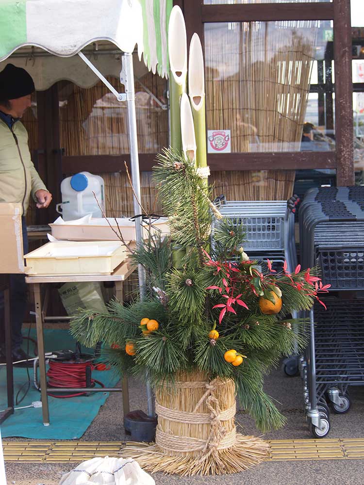 年末に東金市植木組合青年部の皆様がお忙しい中道の駅 みのりの郷 東金のために作ってくださった門松でお出迎えをしております。