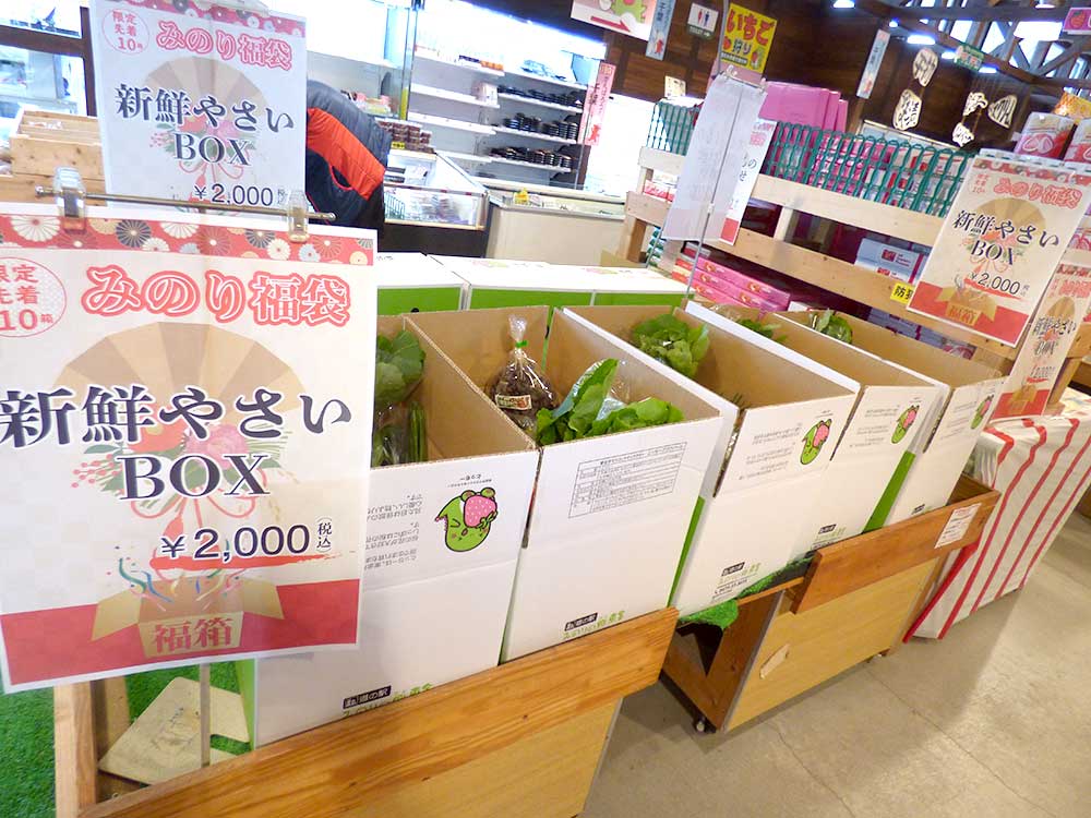 新鮮お野菜のセットの福箱が2,000円(税込)、駅長おすすめオイシイセットの福箱が3,000円(税込)です。