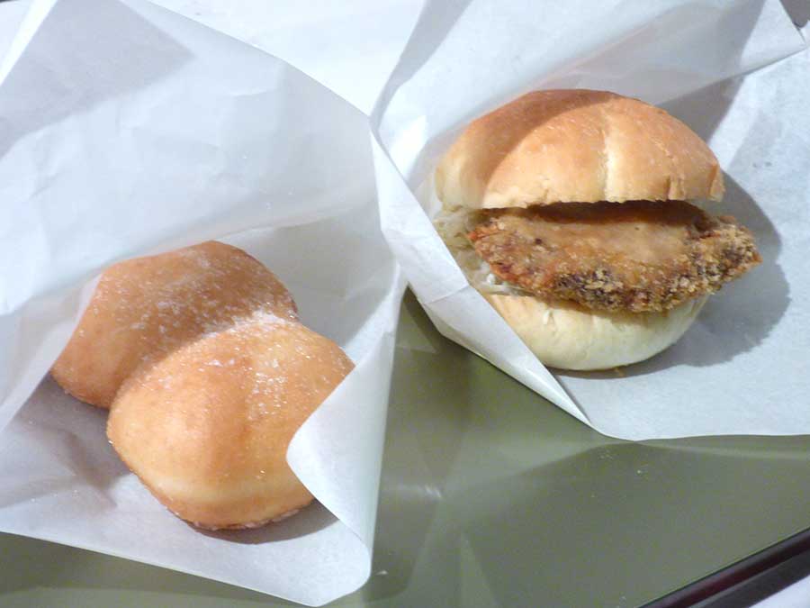 名物、鹿肉バーガーでエネルギーをモグモグとチャージしつつ、夜につれてボルテージの上がる「しばれフェスティバル2020」に備えるスタッフです。