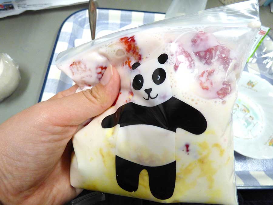 みのりとろ〜りプリンぷれみあむをジッパーバッグに入れしっかりと封をして6時間程度、冷凍庫へ。