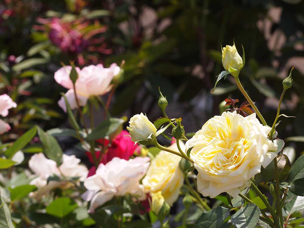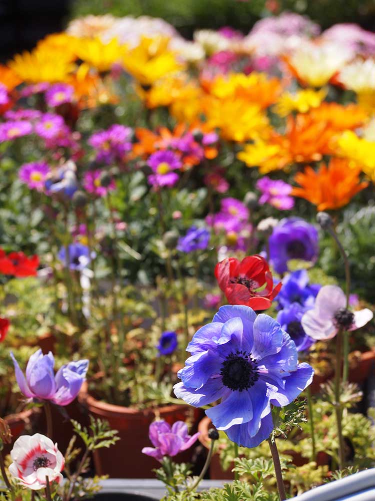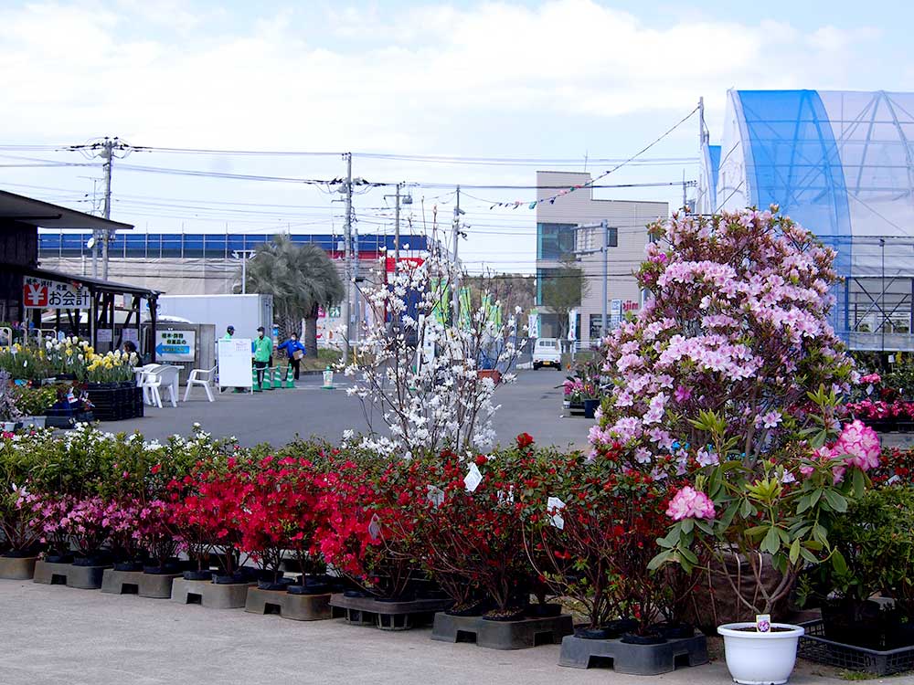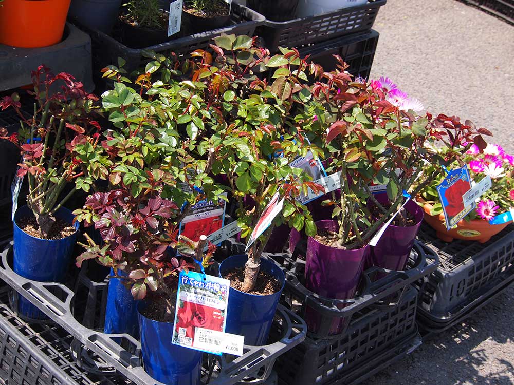 色とりどりの花苗、5月ごろに花が咲くバラの苗なども魅力的です。
