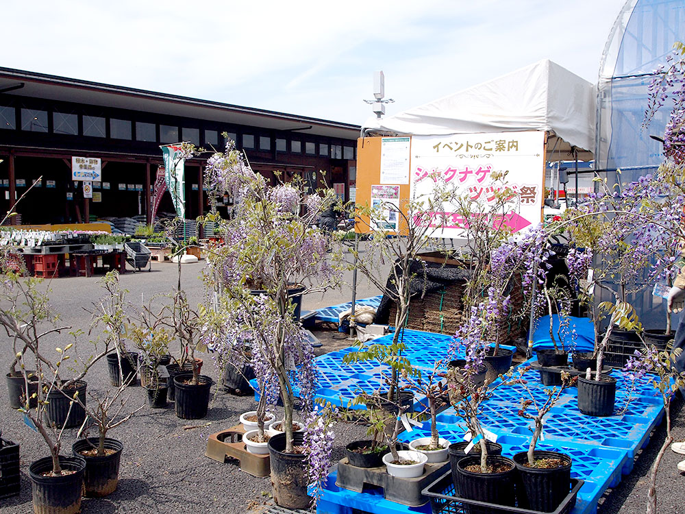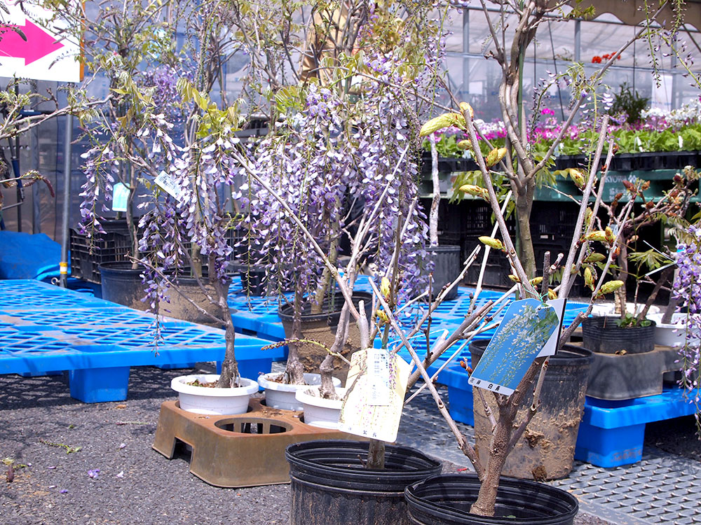 せっかくなので、現在開催中の「春の山野草特設会場」の隣に「プチ藤まつりコーナー」を準備中です!