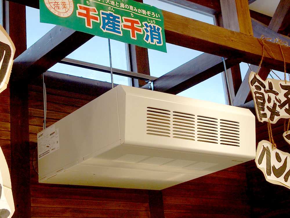 そこで、東金マルシェ店内に、風除室と同時に「高機能換気システム」が2か所設置されました。
