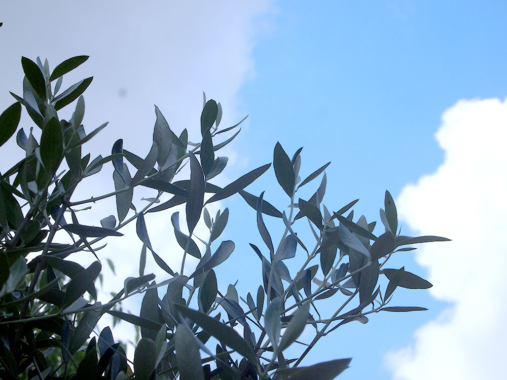 - オリーブの木の上のほうがしっかり育っているなら、下の方で新枝に栄養が取られないようにカットしたほうがよい。